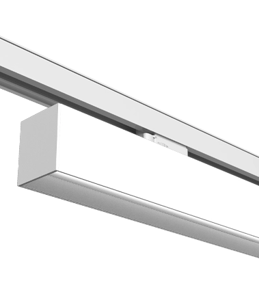 Linear rail-mounted luminaire with recessed decorative louvre with opal diffuser, fully configurable in size, luminous flux and colour, very easy to install avoiding lateral light outflows and through the covers.