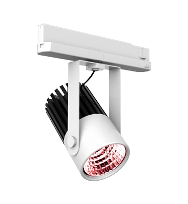 High-power track spotlight with reduced dimensions and high lighting performance. Highly versatile and configurable in colours, apertures and powers, as well as swivel range. Compatible with universal three-phase track, with driver included in the adapter that is integrated in the track.