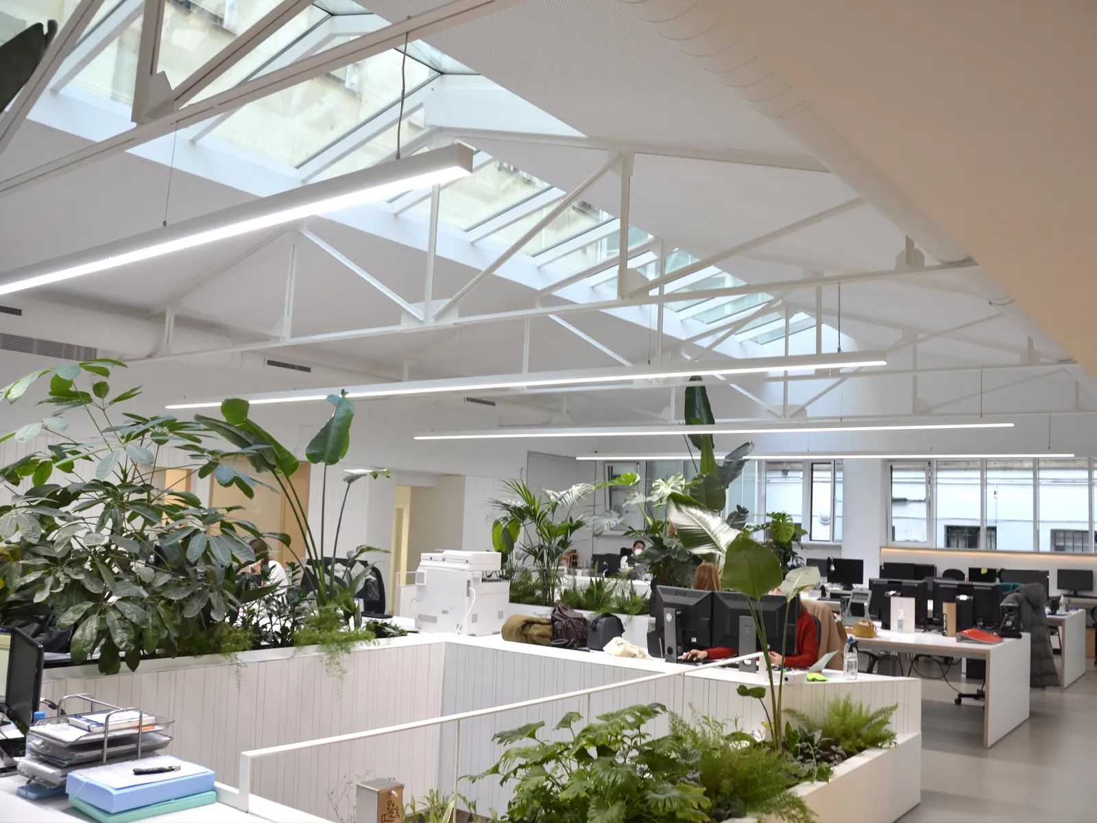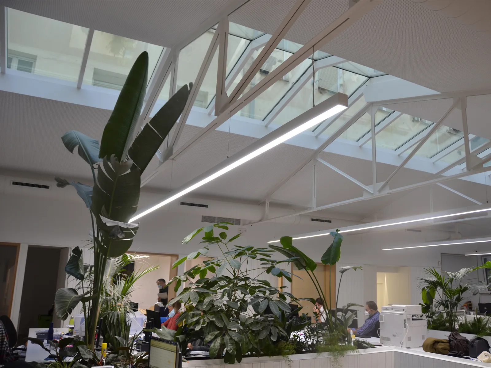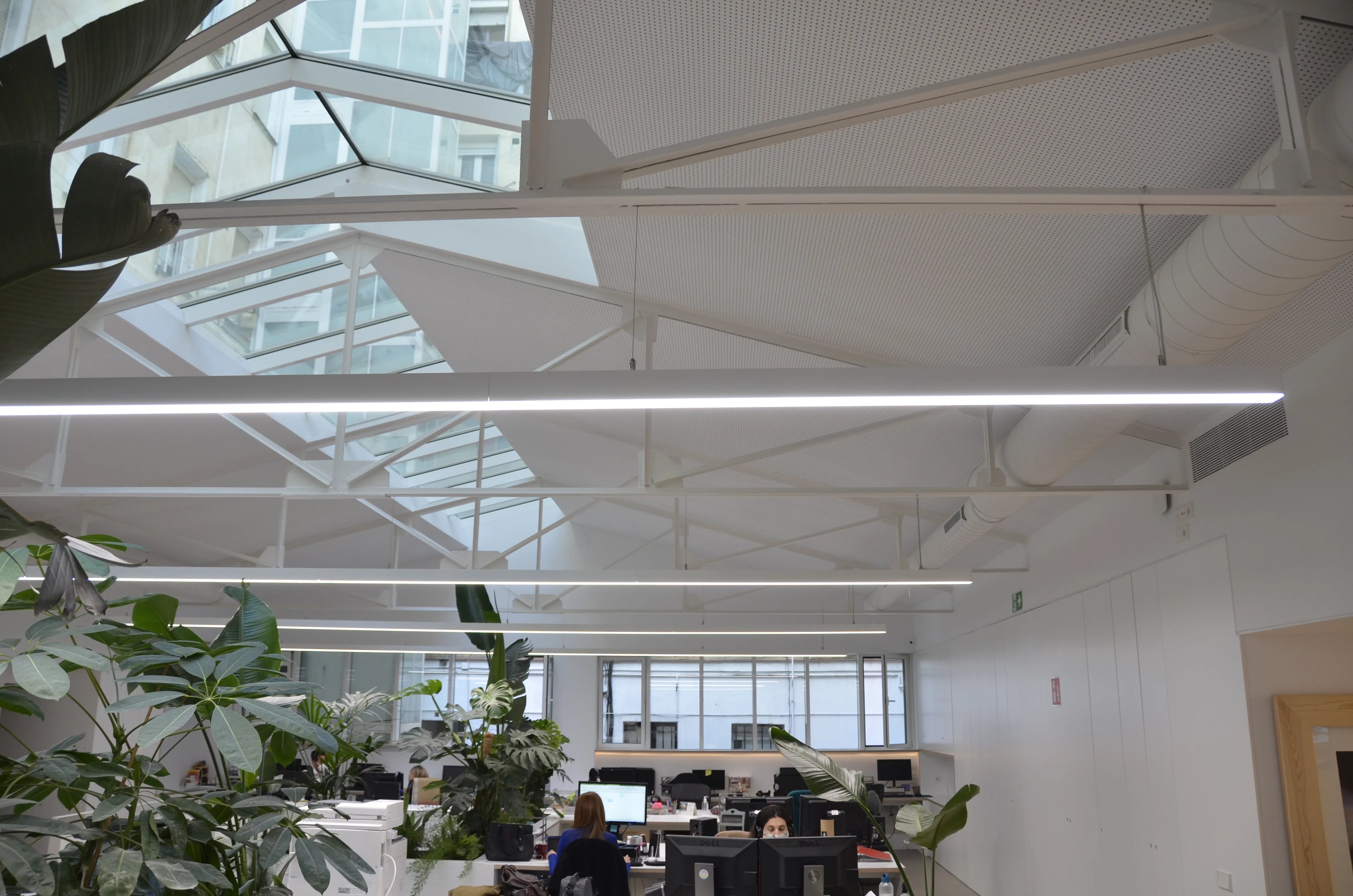The main objective of this project was to transform the Catorce offices into a more efficient, comfortable and visually attractive working environment. To achieve this, we opted for the installation of both surface mounted and suspended linear luminaires, with a design that adapts perfectly to the needs of the space. The surface mounted linear luminaires were chosen for areas where direct and uniform lighting is required, while the suspended luminaires provide soft and balanced general lighting, avoiding glare and shadows that can cause visual fatigue.