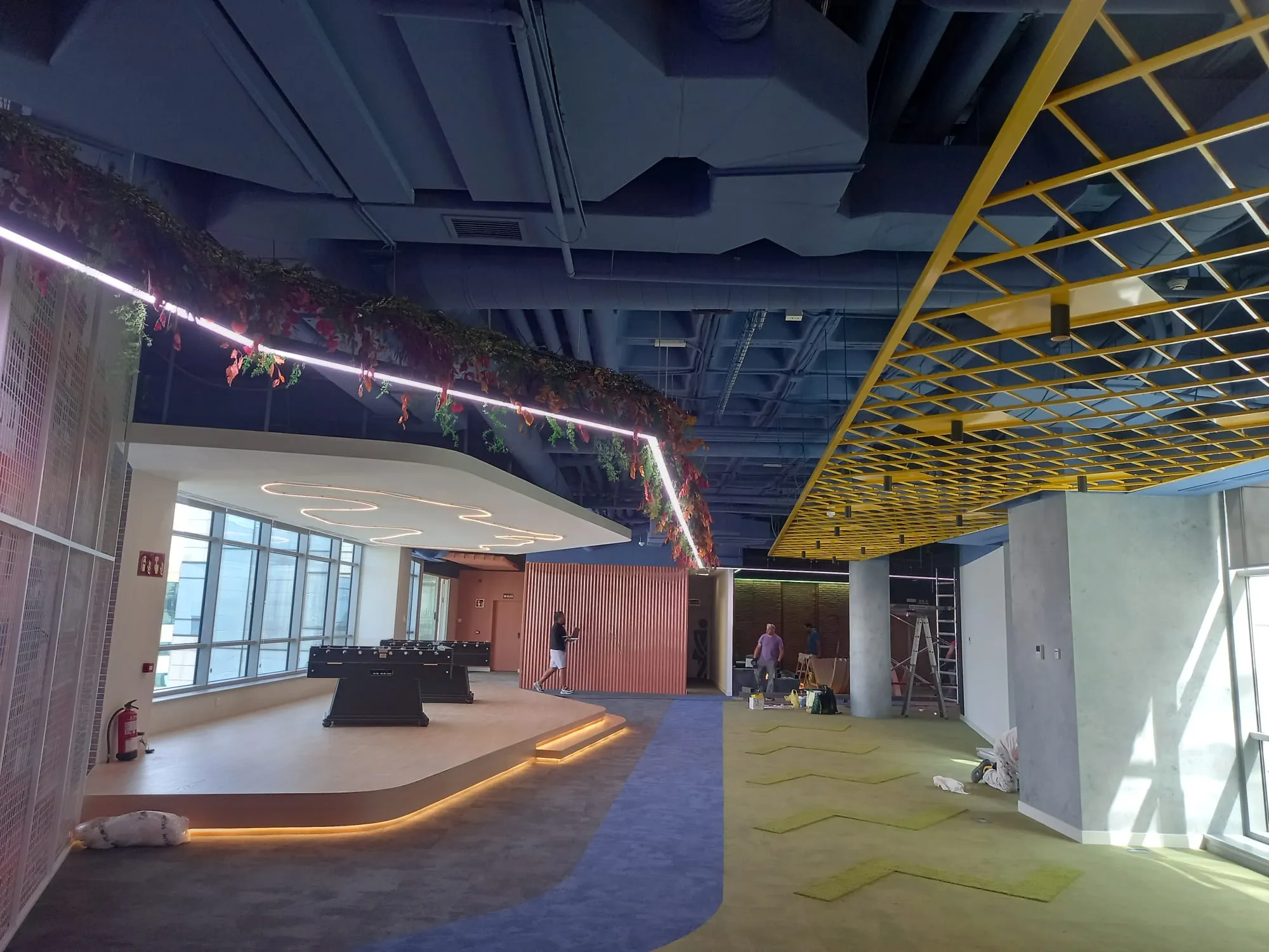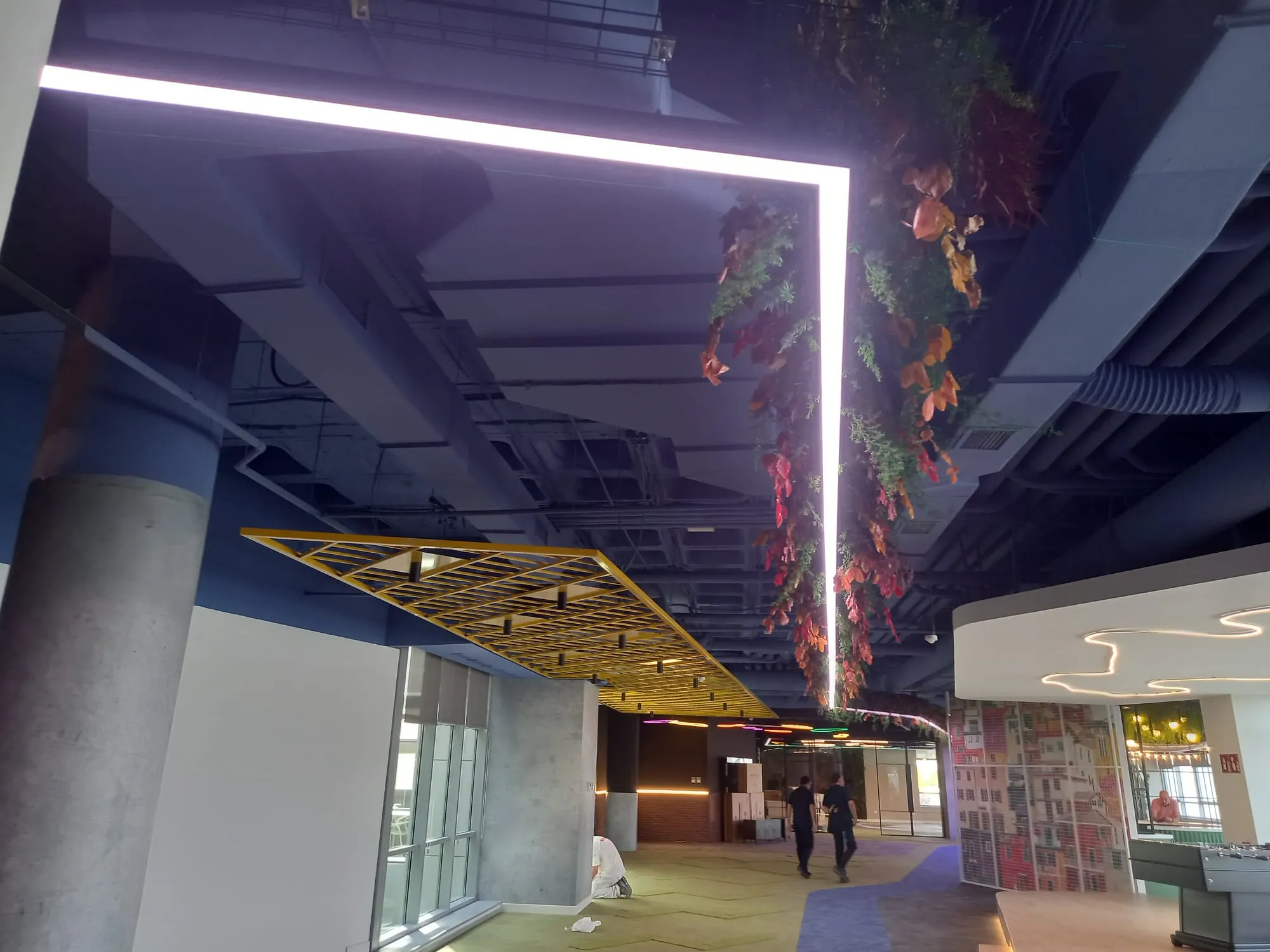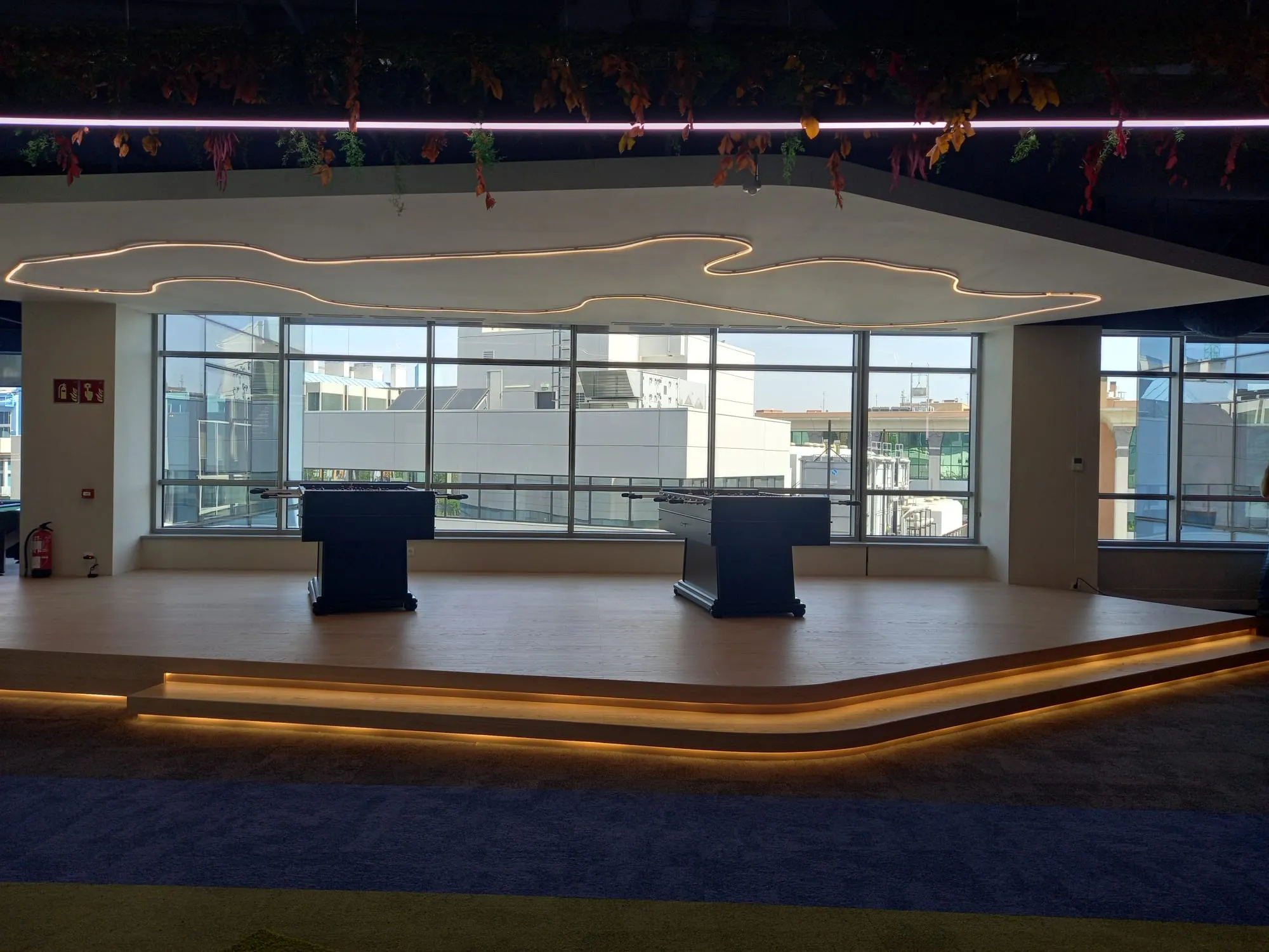 One of the most outstanding features of this lighting project is the use of RGB technology, which allows the colour and intensity of the light to be adjusted according to the needs and preferences of the moment. This versatile functionality is ideal for adapting the work environment to different activities, from meetings and presentations to periods of individual concentration. With the ability to change the colour and temperature of light, employees can customise their work environment to optimise their productivity and well-being.