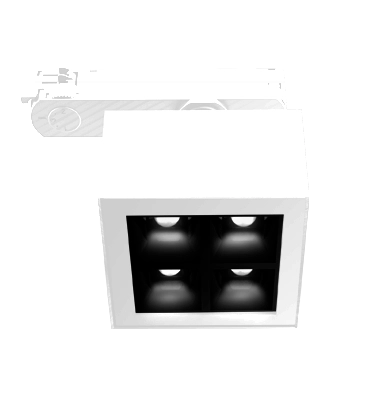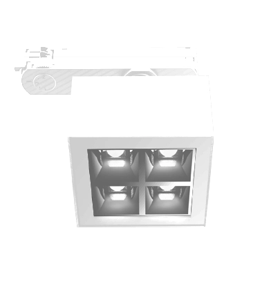 Foco downlight LED para instalación a carril trifásico (Global) con optica de alto rendimiento e índice de deslumbramiento muy bajo (UGR<16). Cuerpo fabricado en aluminio de extrusión de alta calidad lacado al horno y acabados texturados.