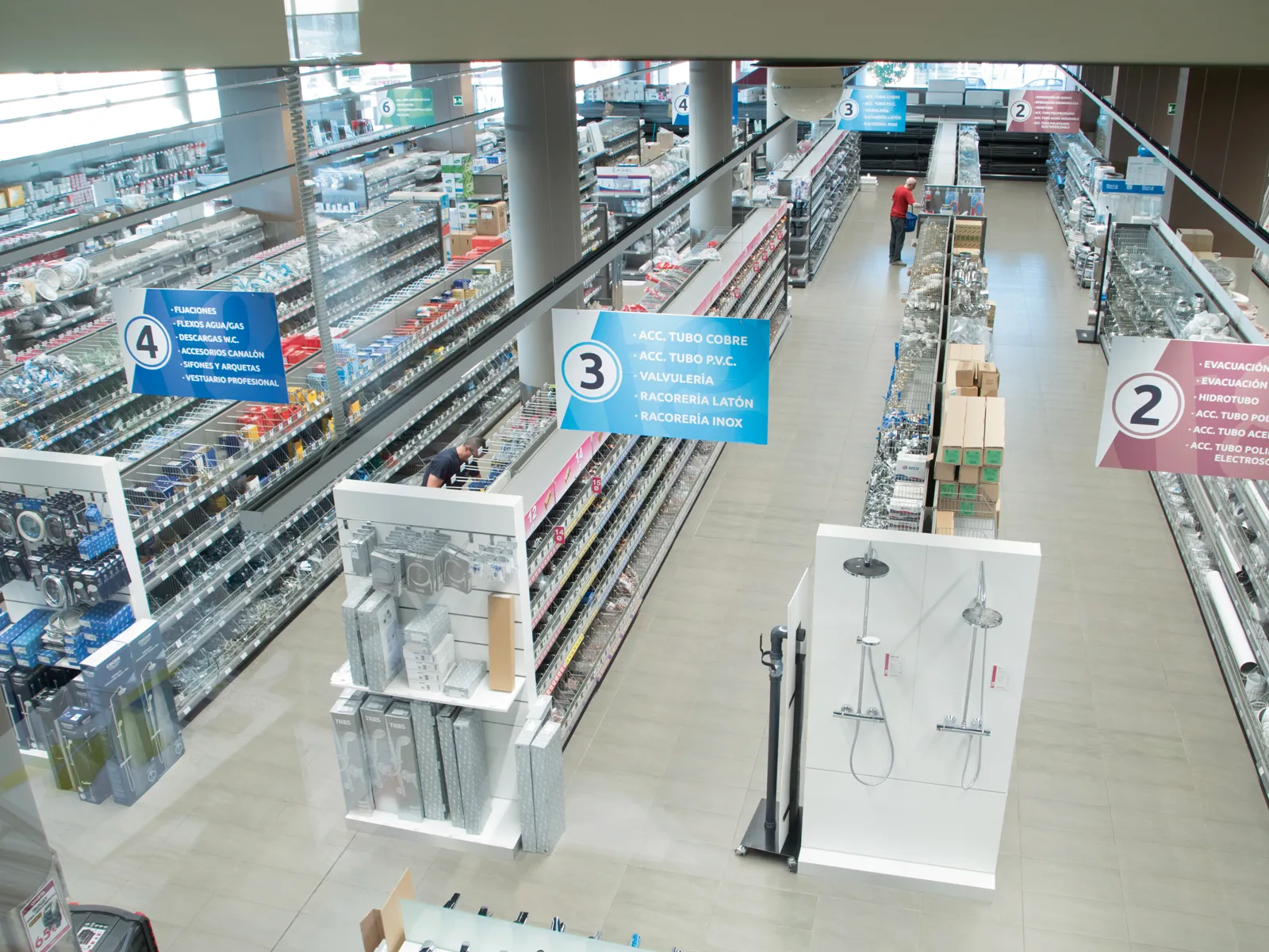 En el caso de los pasillos principales, es esencial proporcionar una iluminación general que sea lo suficientemente brillante para permitir a los compradores ver con claridad, pero sin llegar a deslumbrar. Este equilibrio no solo mejora la experiencia de compra, sino que también contribuye a un ambiente cómodo y agradable. Para lograr esto, se emplearon luminarias lineales suspendidas, que ofrecen una distribución uniforme de la luz sin generar deslumbramiento.