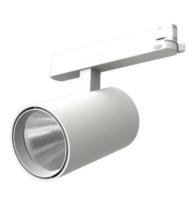 Projecteur à LED pour installation sur rail triphasé (Global), à haute puissance, avec optique à différentes ouvertures pour une plus grande concentration de la lumière. Corps en aluminium, finition laquée au four et texturée.