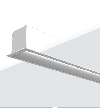 Luminária linear com ótica decorativa recuada e difusor opalino, que melhora o conforto visual em comparação com outras luminárias. Totalmente configurável em tamanhos, fluxos luminosos e cor. Ideal para linhas contínuas.