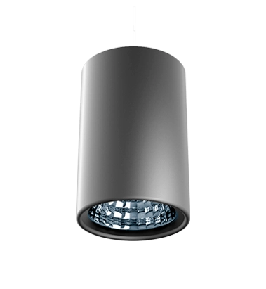 LED-Strahler für abgehängte Montage. Massiver Aluminium-Kühlkörper im Gehäuse verborgen. Leistungsstarker Facettenreflektor mit verschiedenen Öffnungen.