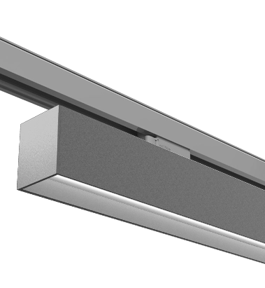 Linear rail-mounted luminaire with recessed decorative louvre with opal diffuser, fully configurable in size, luminous flux and colour, very easy to install avoiding lateral light outflows and through the covers.