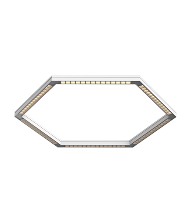 New LED SLIM luminaire with hexagonal shape, small size, external driver, high-performance optics and very low glare index (UGR<16) for suspended installation.