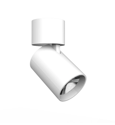 Downlight LED orientable diseñado para su instalación adosada, ofreciendo versatilidad gracias a sus múltiples opciones de óptica intercambiables y la posibilidad de seleccionar la temperatura de color mediante switch.