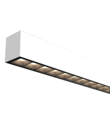 Luminaria lineal con ópticas decorativas de alto rendimiento. Este modelo es totalmente lineal, donde la óptica ocupa la totalidad de la luminaria.