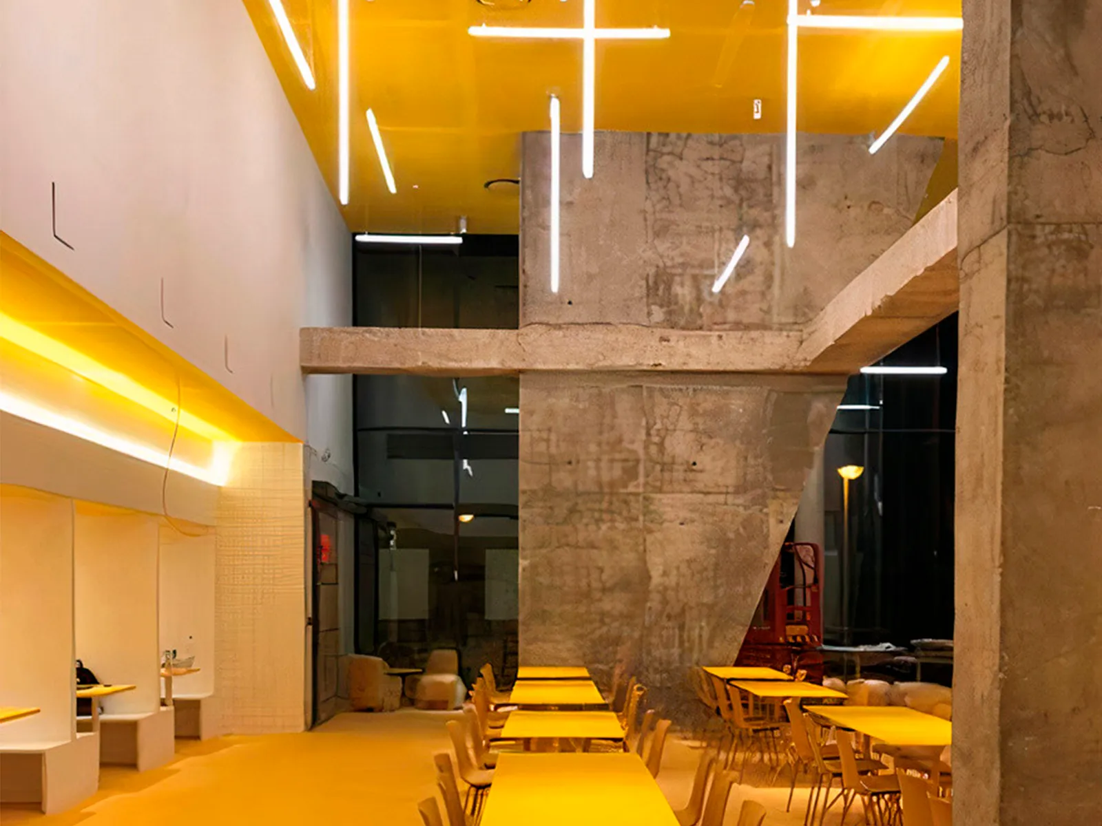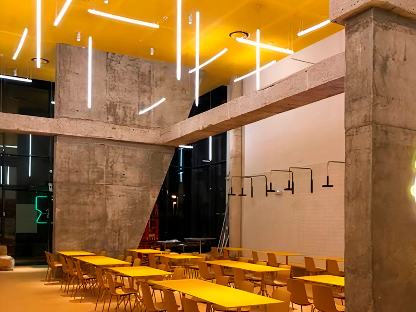 Uno de los aspectos más destacados de este proyecto de iluminación en un restaurante de Valencia es cómo las luminarias tubulares han transformado el ambiente general del espacio. La luz suave que emiten crea una atmósfera íntima y relajante, ideal para cenas tranquilas, pero también versátil para adaptarse a eventos más animados. Esta capacidad de crear una atmósfera dinámica es esencial en un entorno de restauración, donde el ambiente debe poder ajustarse a diferentes ocasiones y tipos de clientela.