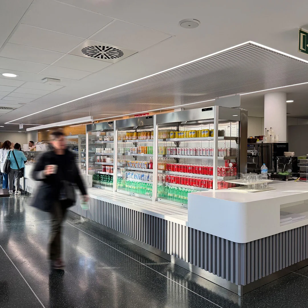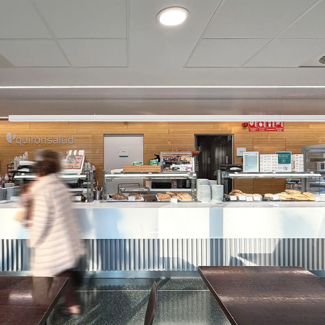 En la Cafetería de un hospital en Barcelona se ha implementado un innovador sistema de iluminación que transforma la experiencia de los visitantes. Utilizando los modelos CLP 140 empotrado y CLP 160 suspendido, se ha logrado una solución luminosa adaptada a las necesidades específicas del entorno hospitalario.