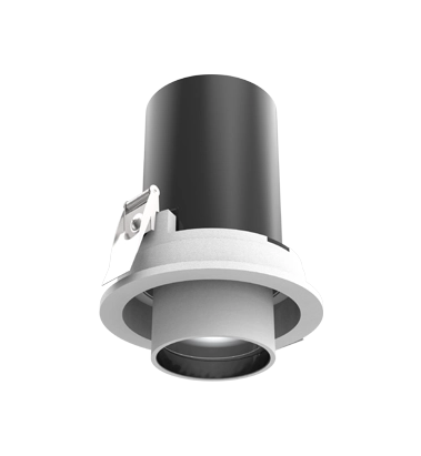 Spot encastré à LED avec projecteur réglable, idéal pour l'éclairage ponctuel dans les espaces commerciaux et résidentiels. Il intègre la technologie COB haute performance et un IRC de 90.