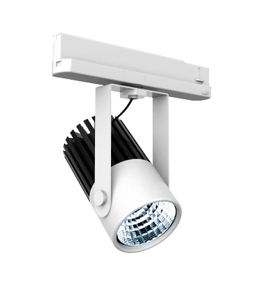 Projetor de alta potência montado em carril com dimensões reduzidas e elevado desempenho de iluminação. Altamente versátil e configurável em termos de cores, aberturas e potências, bem como de amplitude de rotação. Compatível com calha trifásica universal, com driver incluído no adaptador integrado na calha.