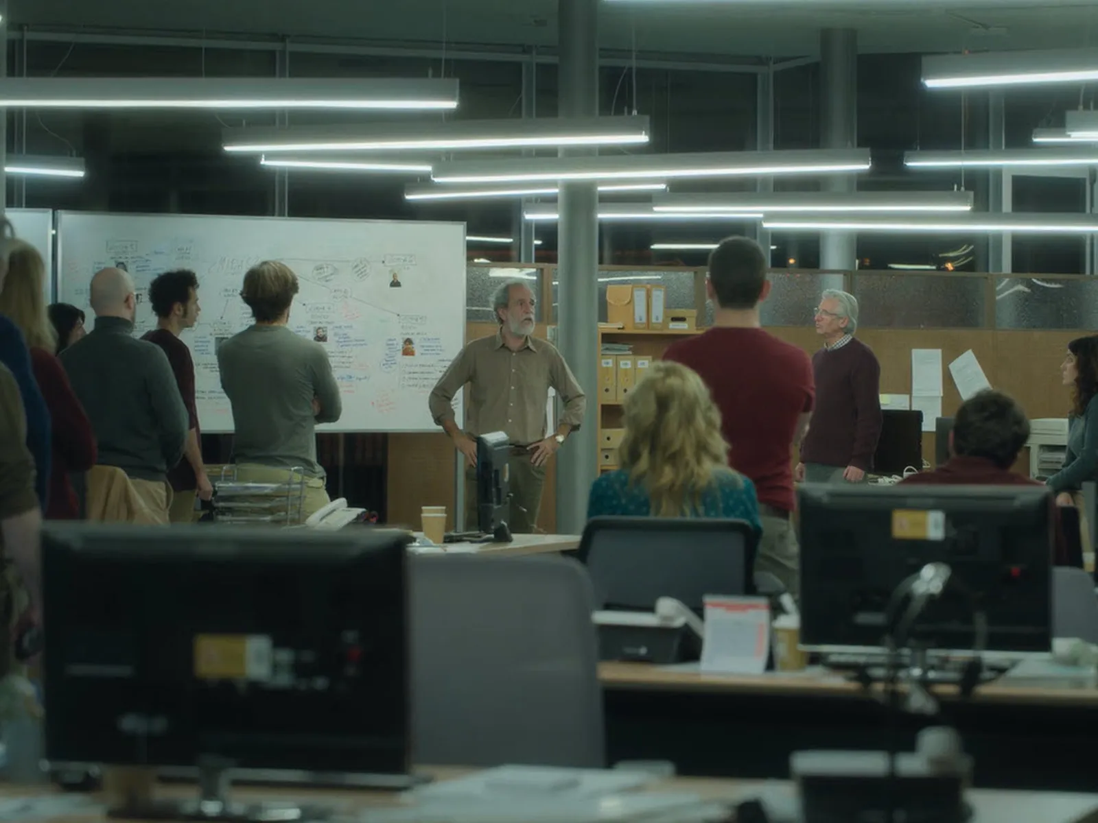 A nossa equipa Celux Lighting trabalhou em estreita colaboração com os designers de produção para desenvolver um esquema de iluminação personalizado utilizando luminárias lineares suspensas. Estas luminárias não só satisfazem os requisitos funcionais, mas também desempenham um papel vital na criação de um ambiente caloroso e acolhedor nos vários locais da série. A iluminação foi cuidadosamente afinada para acentuar a arquitetura e o mobiliário dos escritórios e outros espaços-chave, acrescentando uma camada de drama e suspense que é essencial para a narrativa de “Os Favoritos de Midas”.