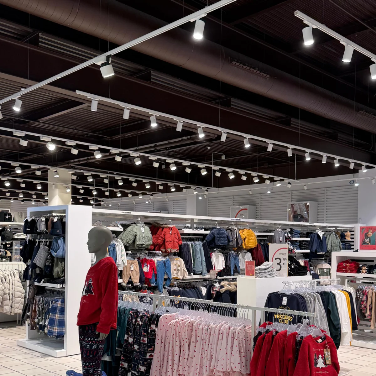 того, вибір цих прожекторів забезпечує ефективне управління енергією та низькі витрати на обслуговування, що в довгостроковій перспективі означає економію для магазину. Нове освітлення не тільки відповідає стандартам візуального комфорту, але й підкреслює естетику простору, покращуючи загальне сприйняття торгового середовища та сприяючи створенню приємної та привабливої атмосфери для покупок.
